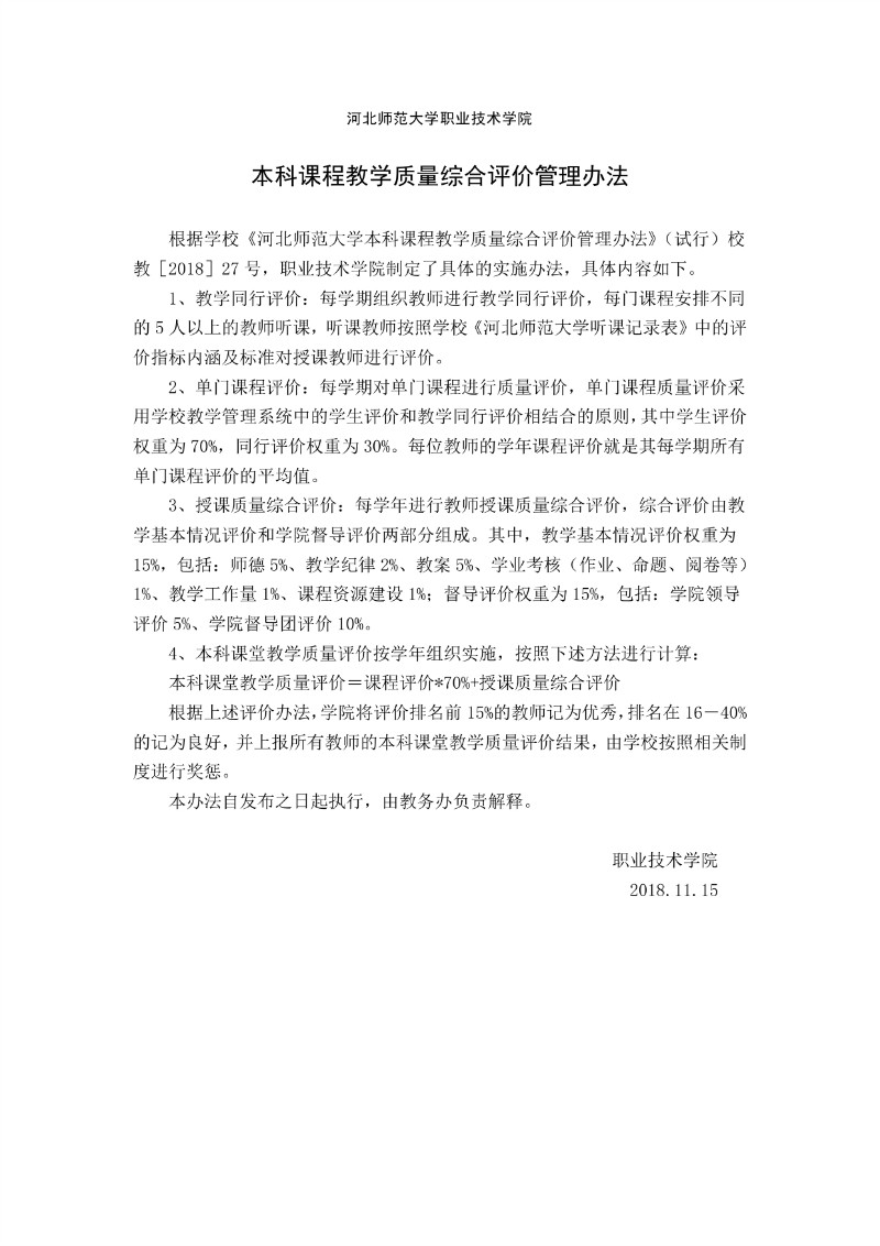 财神娱乐城 本科课堂教学质量评价办法