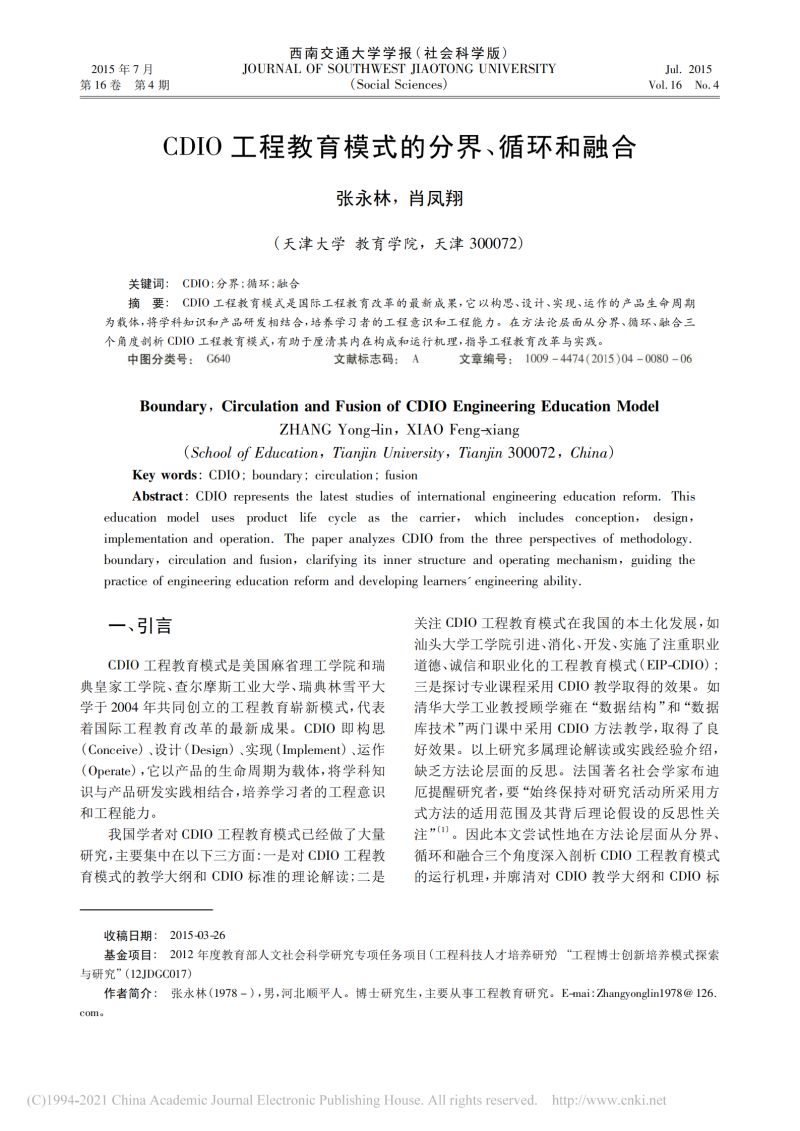 CDIO工程教育模式的分界_循环和融合